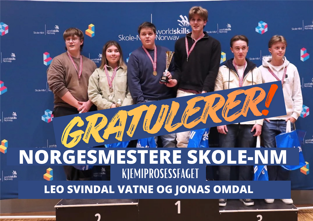 2 av våre elever var deltagere NM forrige uke i kjemiprosess- og laboratoriefaget.